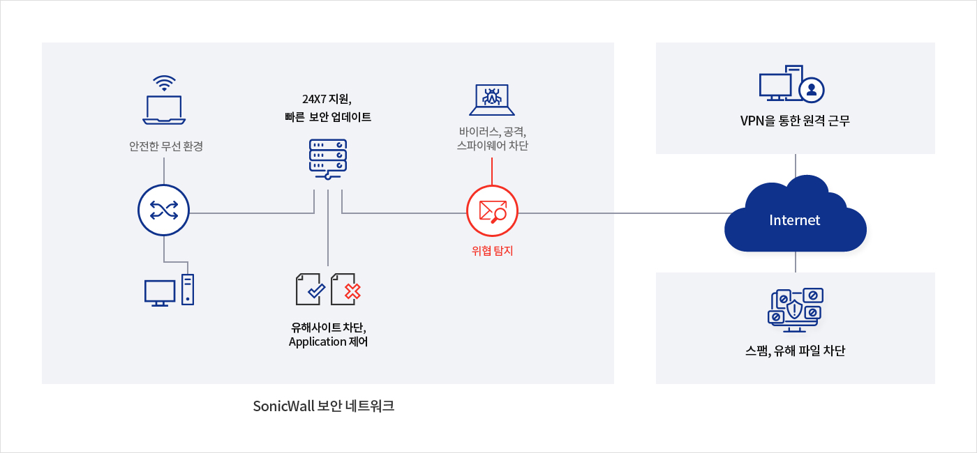 차세대 방화벽 서비스, 엔드포인트 보안, 이메일 보안을 비롯한 지능형 다중계층 보안서비스를 제공하며, 랜섬웨어로부터 기업네트워크 보호